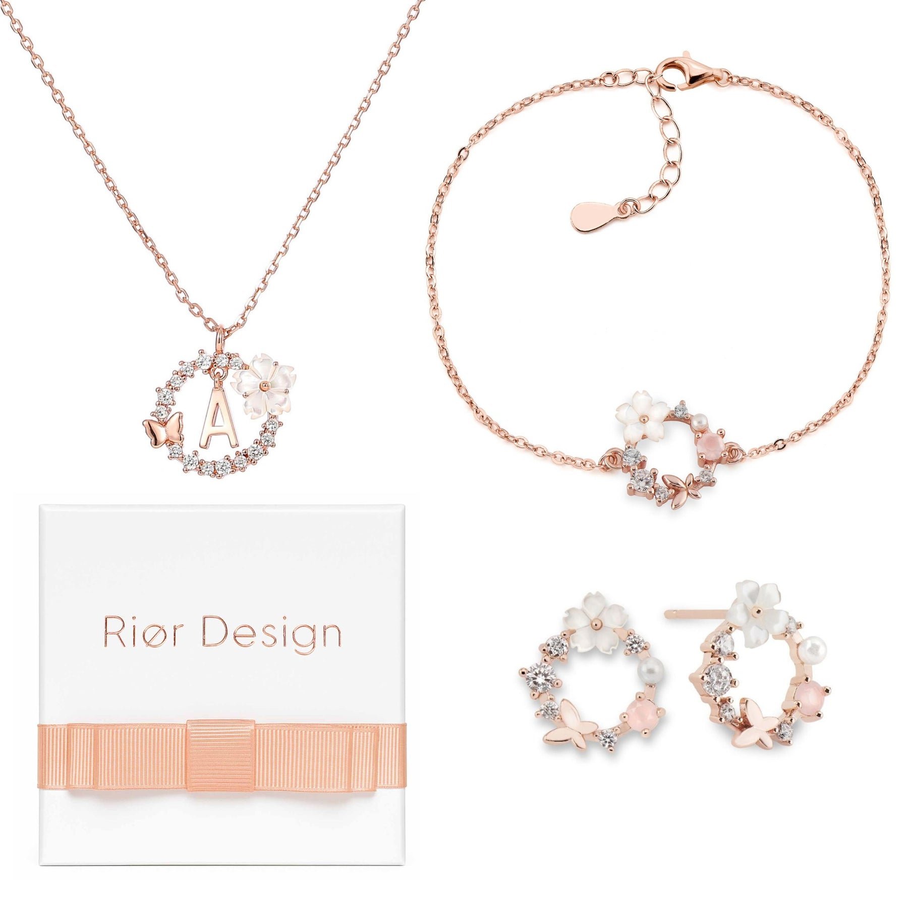 Letter Necklace, Flower Earrings and Bracelet Bundle