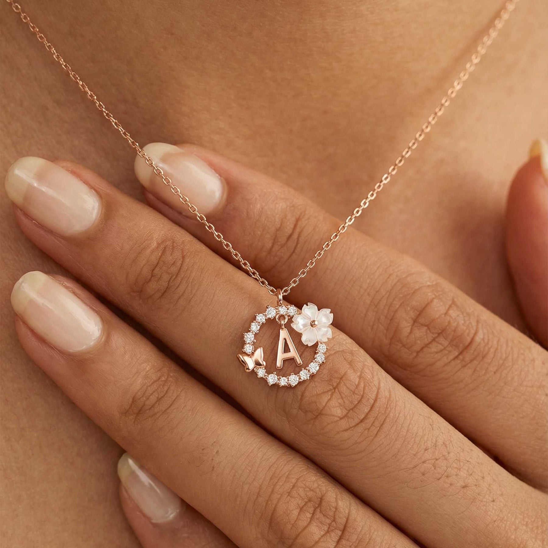 • Materials: Rose Gold Plated Copper, Cubic Zirconia, Mother-of-Pearl Flower